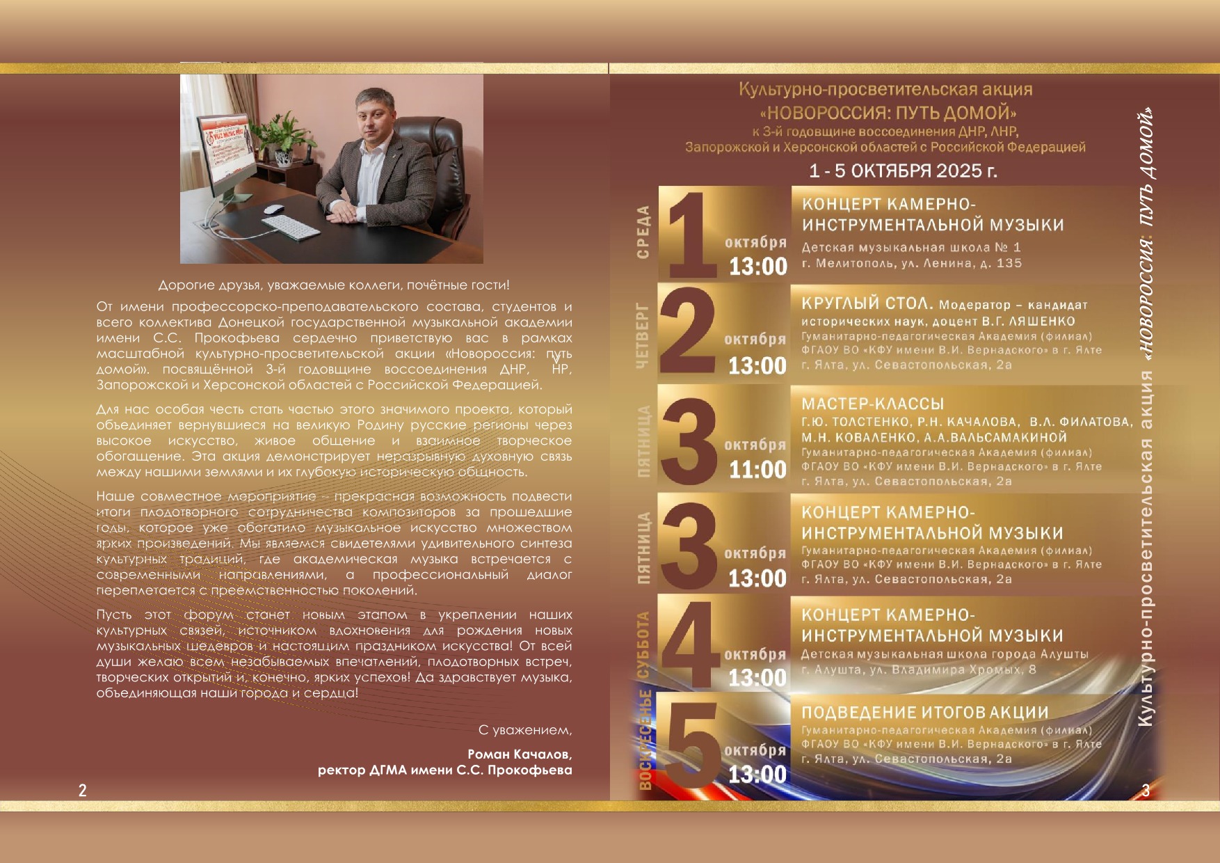 «Пусть этот форум станет источником вдохновения для новых шедевров и настоящим праздником искусства!» – напутствует участников и зрителей Роман Качалов, ректор ДГМА имени С.С. Прокофьева.