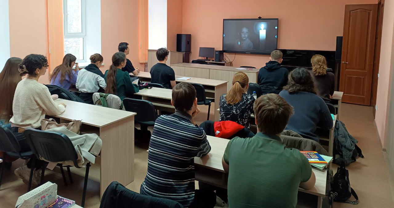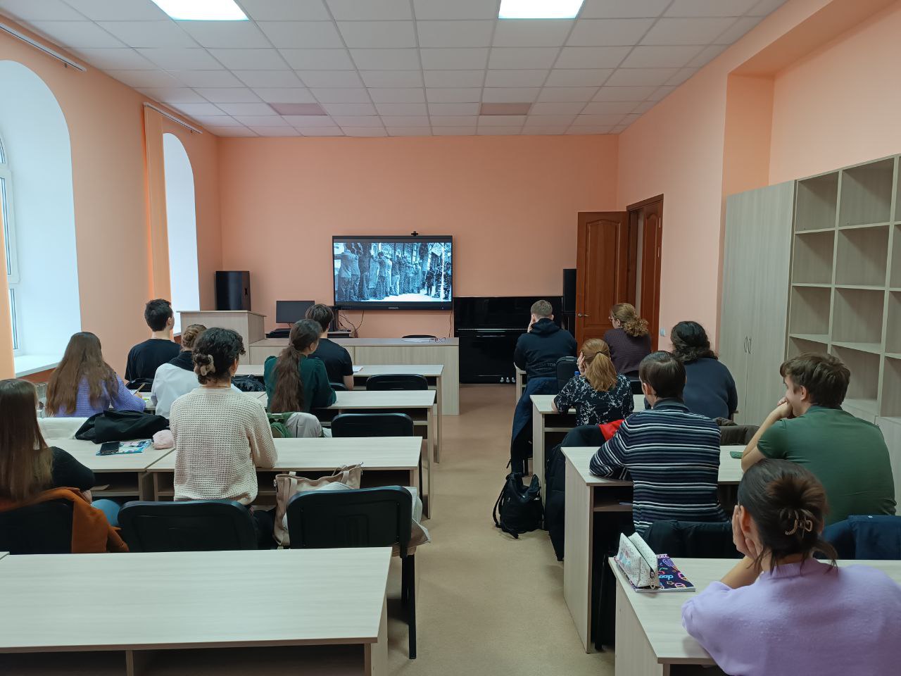 После просмотра студенты обсудили со спикером, кандидатом исторических наук, доцентом кафедры социально-гуманитарных дисциплин Ольгой Мармазовой, значимость подобных кинопоказов, высказали свои эмоции и мысли по отношению к событиям Великой Отечественной войны.